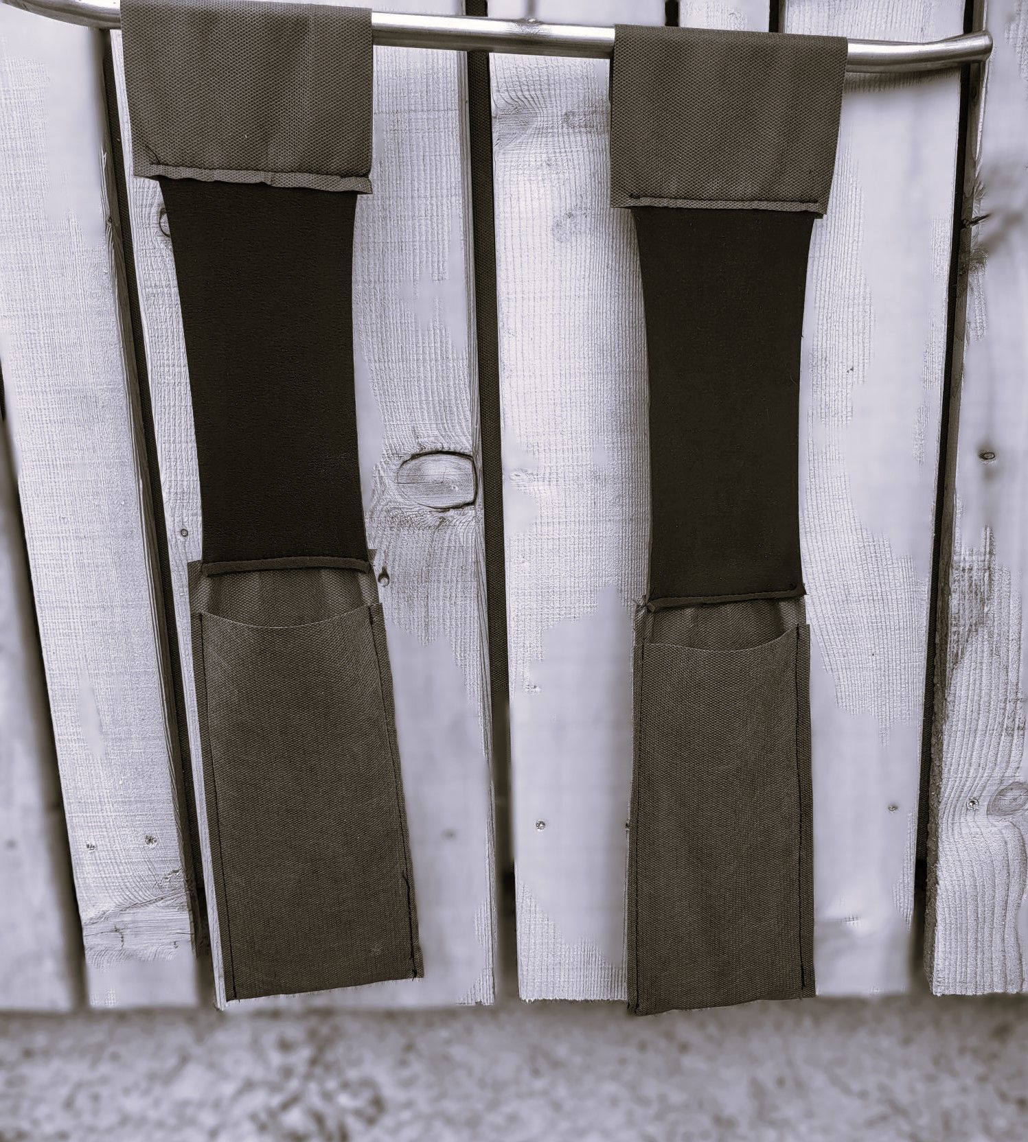 Da wir aus der Textil- und Klebetechnik stammen und auch immer wieder Prüfungen durchgeführt haben, hat es sich nach mehreren Versuchen mit unterschiedlichen Neopren rausgestellt, welches Neopren sich für unseren Zweck am besten eignet und eine gute Haptik, Tragekomfort und sich nicht zu schnell ausdehnt.